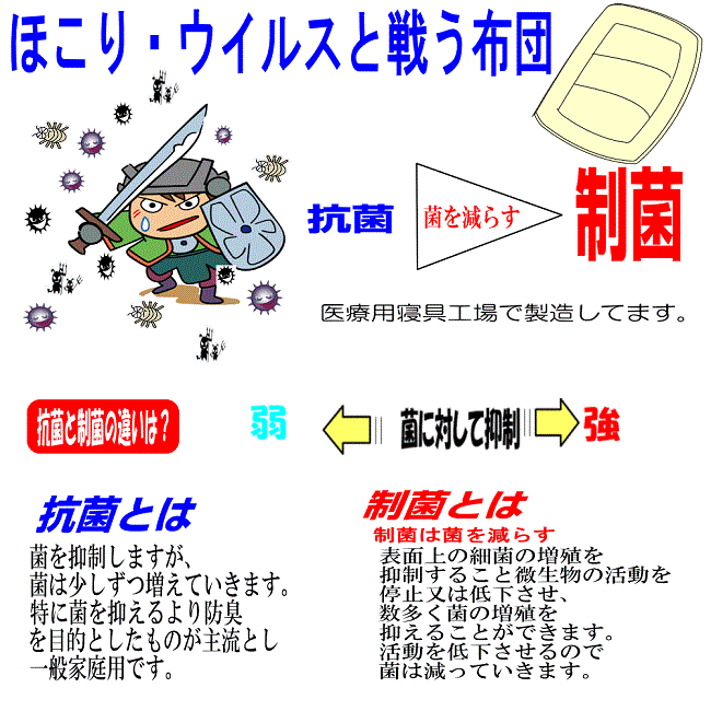 高性能制菌 【掛布団】 サイズ:150x210 1.7kg入り 【多層式極太敷布団】 カバーサイズ:100x210 4.0kg入り ベットにも使えます。